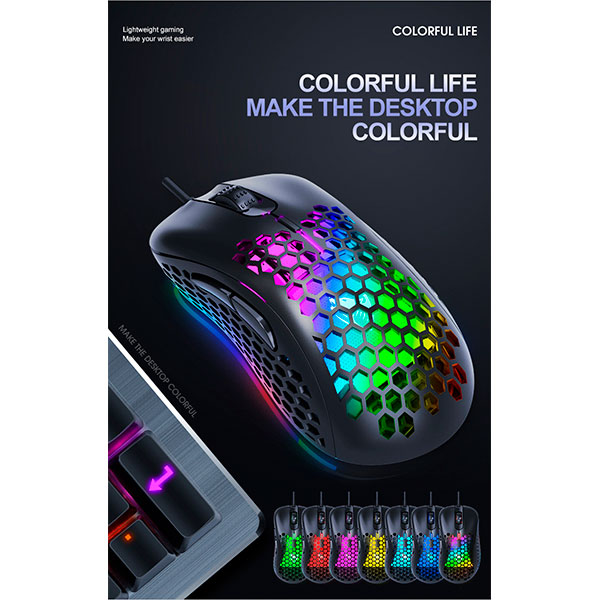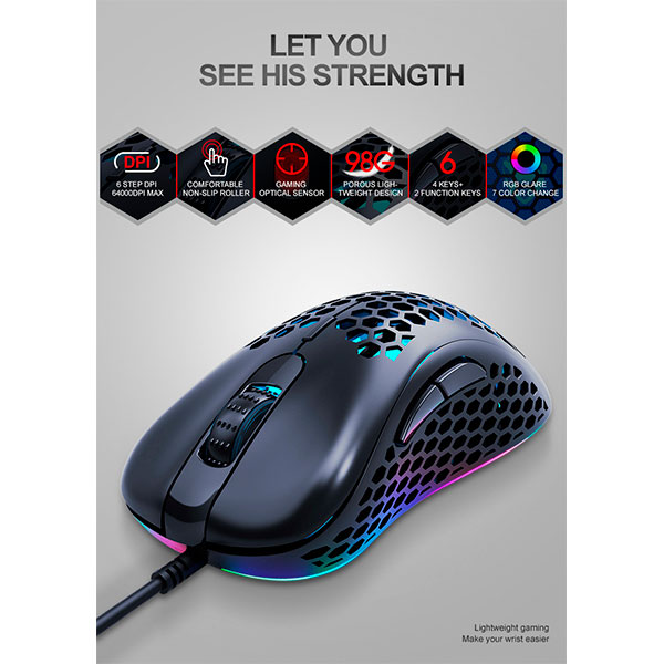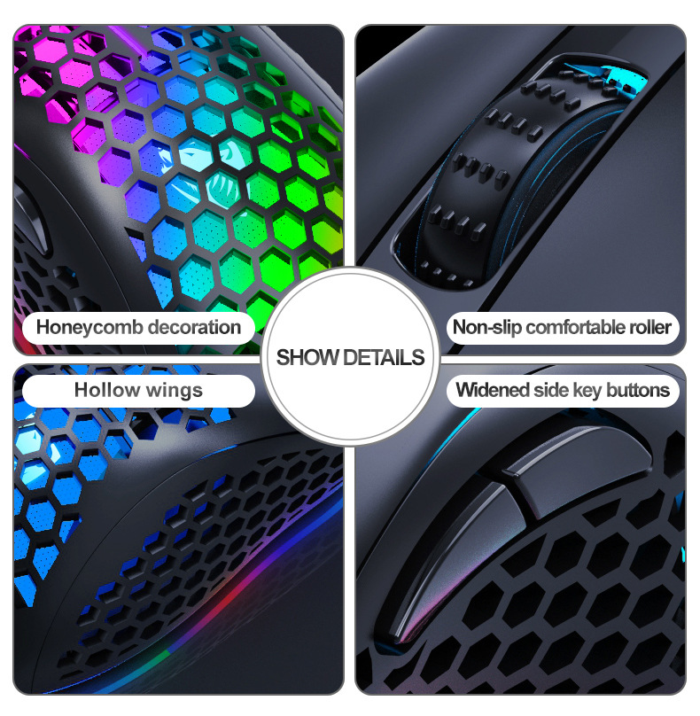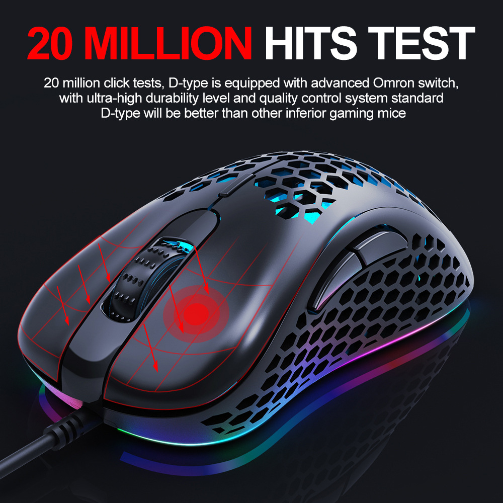 Ratón T-WOLF G540 para juegos con cable USB con 6 botones y orificios tipo panal, ratón óptico con luz de respiración de 4 colores para jugadores de PC